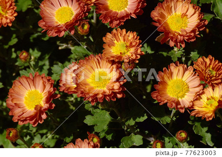 調布市深大寺元町の植物園に咲くオレンジ色のキクの花