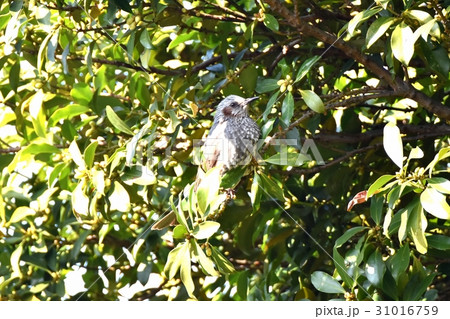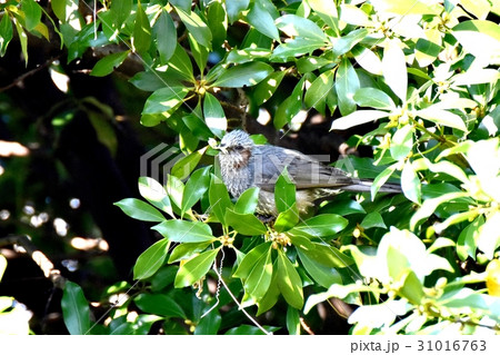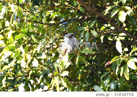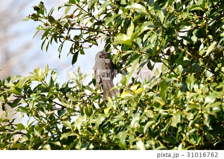 東京三鷹の野鳥 三鷹仙川公園のシキミにとまるヒヨドリ