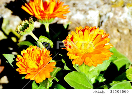東京都三鷹市の植物 三鷹仙川公園に咲くキンセンカ