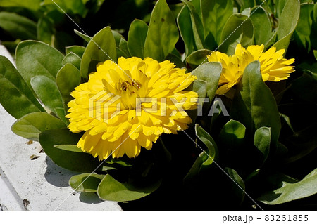 三鷹中原に咲く黄色いキンセンカの花