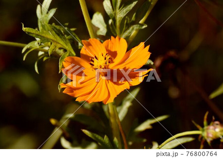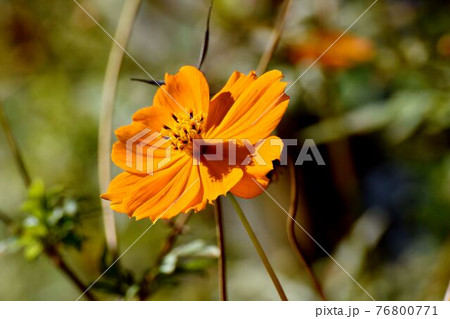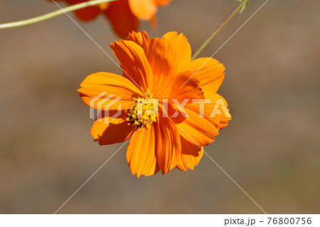 調布市深大寺元町の植物園に咲くオレンジ色のキバナコスモスの花