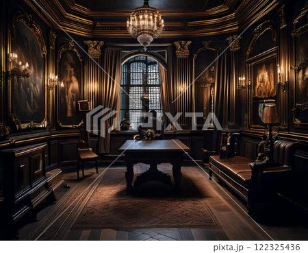 ビクトリア調の薄暗い部屋f ai生成画像