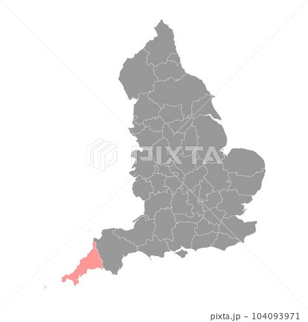 Cornwall map, administrative county of England. Vector illustration.
