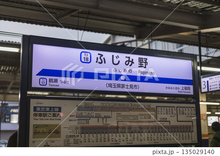 東武東上線 ふじみ野駅の駅名看板と路線案内
