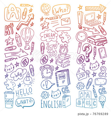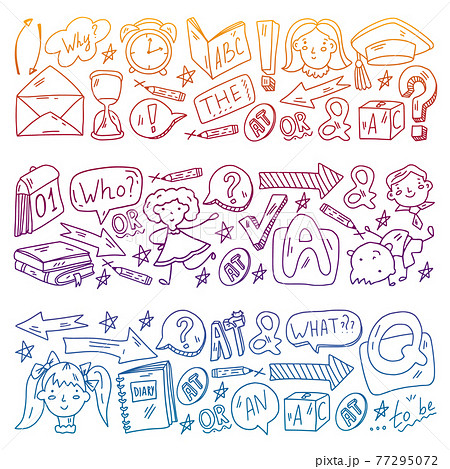 かわいい英語 !? 疑問マーク English ローマ字(クロ色)/手書きイラスト素材