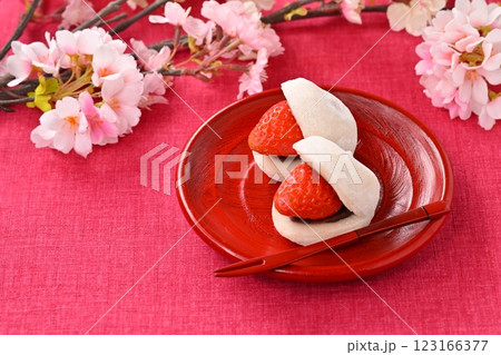 春の和菓子、いちご大福、苺だいふく、イチゴ大福。