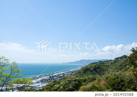 静岡市 久能山東照宮の表参道から望む駿河湾といちご海岸通りと街並み