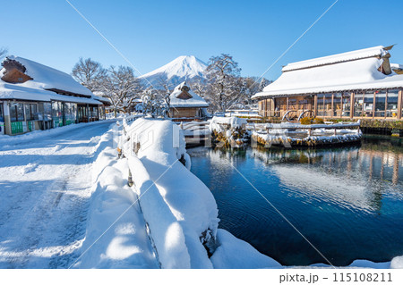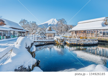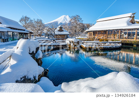 冬の忍野八海 富士山 雪