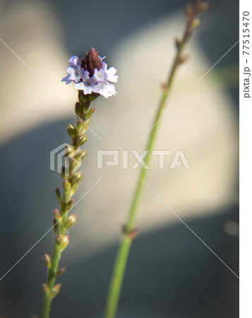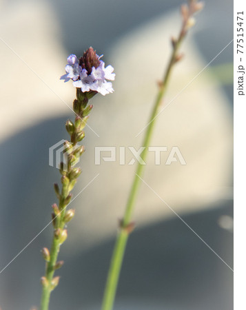 白マスがボケた背景に紅紫色の花を咲かせる斜めに延びた2輪のマツバウンラン