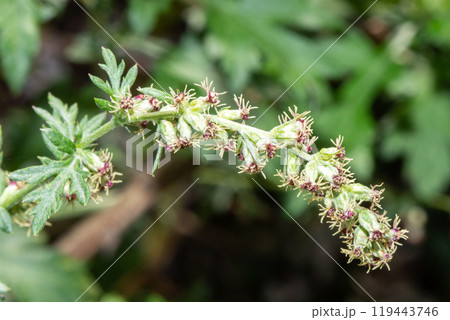 ヨモギの花 クローズアップ(秋の花粉症の原因植物)