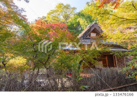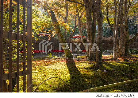 京都嵯峨嵐山の秋 紅葉の宝厳院 獅子吼の庭 茶室「無畏庵」