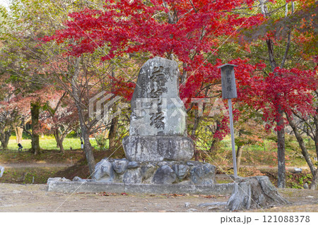 京都北嵯峨大沢池の茶筅塚と紅葉