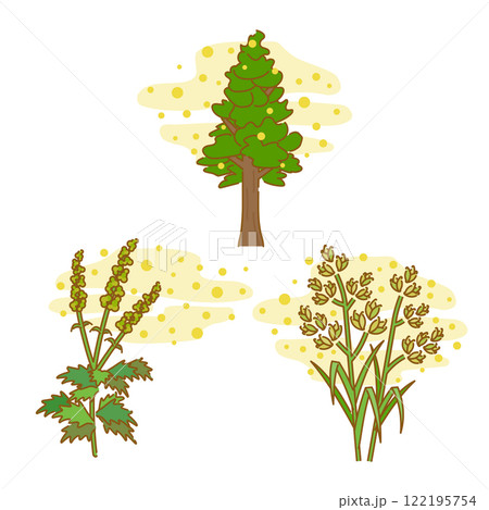 花粉症の原因:杉の木・ブタクサ・カモガヤのイラストセット