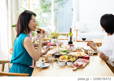 ホームパーティを楽しむミドル女性