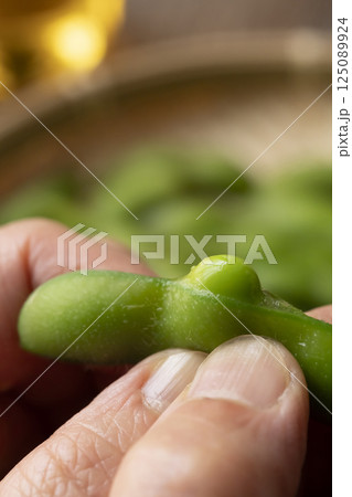 酒の肴 枝豆( お酒のおつまみイメージ )えだまめの塩茹で 豆 枝まめ