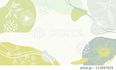 夏の青空と緑や花をイメージした抽象的な水彩背景イラストレーション