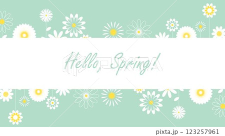 Hello spring banner with white flowers