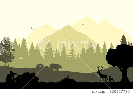 Wildlife nature landscape silhouette. Vector illustration design template