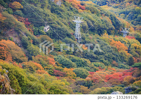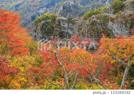 晩秋の小豆島、紅葉の寒霞渓から見る内海湾と田浦半島