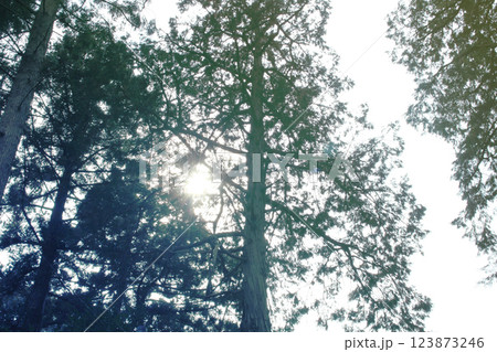 見上げた木々と木漏れ日