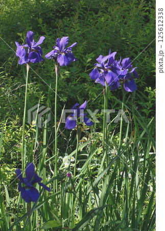 (フラワーツーリズム)草むらのブルーサルビア(余白:右・左上)