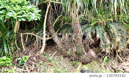葉の裏側、薮に生え、蘇鉄のようにはを広げるシダのヤブソテツ