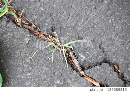 雑草、草、アスファルト、地面、植物、緑、自然、屋外、葉