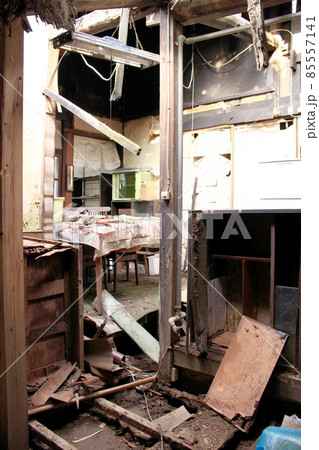 【廃墟感、災害イメージに】劣化し朽ち果てた民家の中