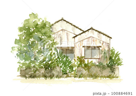 人が住んでいない荒れ果てた空き家の水彩画