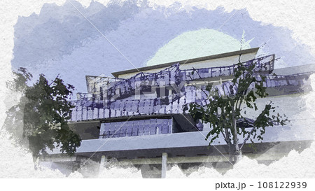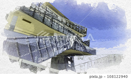 水彩画風 角川武蔵野ミュージアム 千人テラス ところざわサクラタウン 埼玉県所沢市