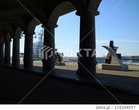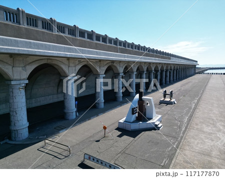 北海道の稚内港北防波堤ドームの港湾の空撮