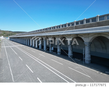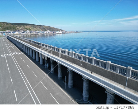 北海道の稚内港北防波堤ドームの海岸線の空撮