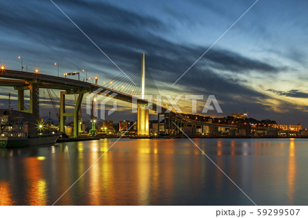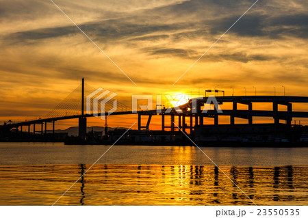 福岡市のランドマーク 荒津大橋の美しい夕景
