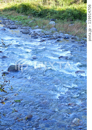 初秋の薄根川風景 利根川支流 群馬県沼田市