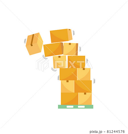 荷崩れ注意、段ボールの荷崩れの下敷きになる人、安全標識・危険・注意喚起のピクトグラム