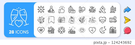Fireworks rocket, Delivery and Buyer line icons. Interest rate, AI generate, Inflation icons. Pack of Discount tags, Heart, Love her icon. Father day, Present, Baggage pictogram. Vector