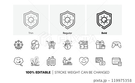 Eco bike, Fireworks and Gamepad line icons. Pack of Shopping cart, Account, Yummy smile icon. Surprise package, Photo camera, Smile face pictogram. Sun protection, Snowman, Insomnia. Vector