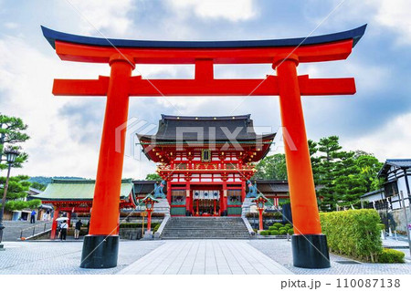 夏の伏見稲荷大社 鳥居と楼門 京都府京都市