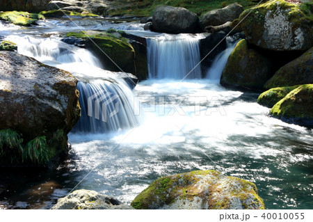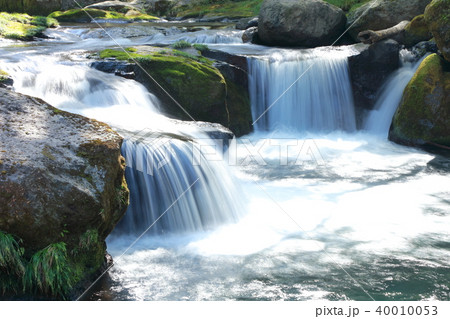 日本の川景色:熊本県の菊地渓谷の菊地川と多くの滝