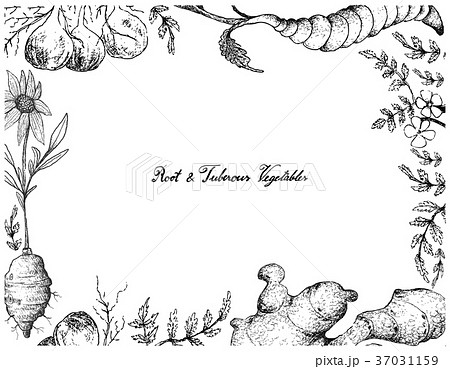 Hand Drawn Frame of Root and Tuberous Vegetables