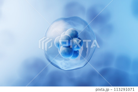 3D Rendering human or animal cells on blue background. Concept Early stage embryo Medicine