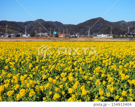 早春の南房総 鴨川の菜な畑ロード 青空のもと満開の菜の花が輝く