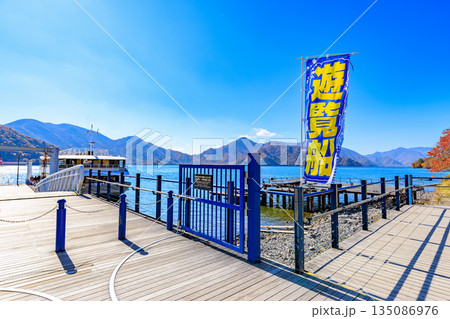 栃木県 日光市 秋の中禅寺湖(中禅寺湖遊覧船のりば)