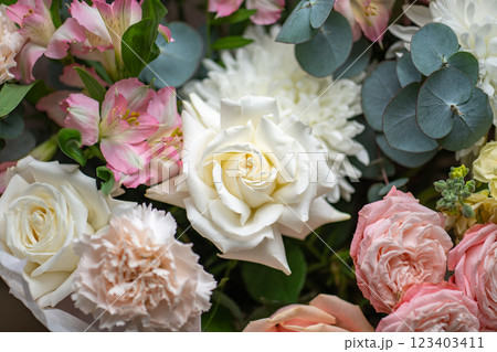 Bouquet of Pink and White Roses close up