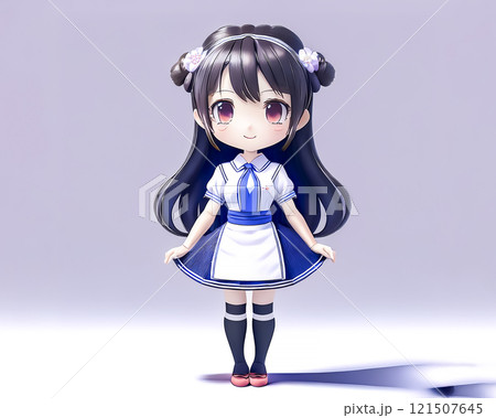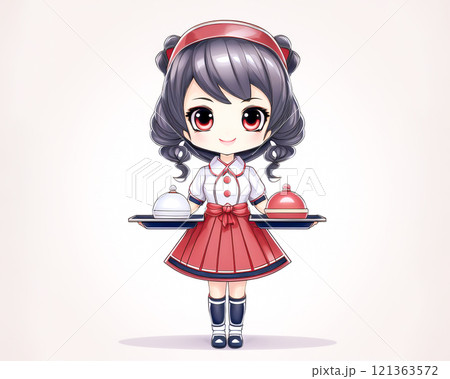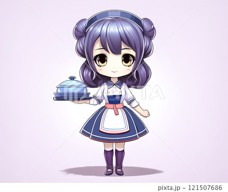ちびキャラ メイドの少女のイメージ素材 給仕