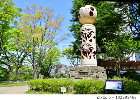 若葉萌ゆる杜の都 仙台 化粧直しされたこけし塔