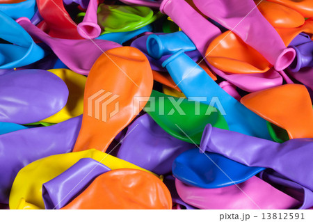 Top view of colorful deflated balloons