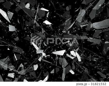 Many pieces of shattered glass over black