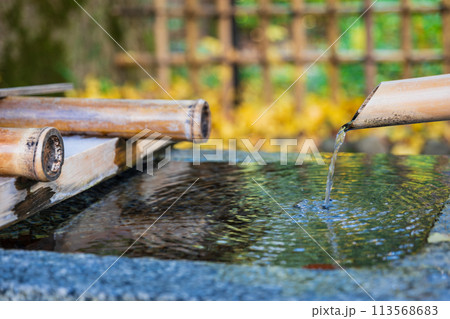 京都の秋、「萩の宮」梨木神社、現存唯一の「京都三名水」染井の水の手水鉢に満開のハギ