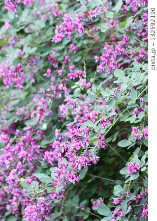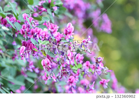日本の秋の野原に咲くピンク色のハギの花